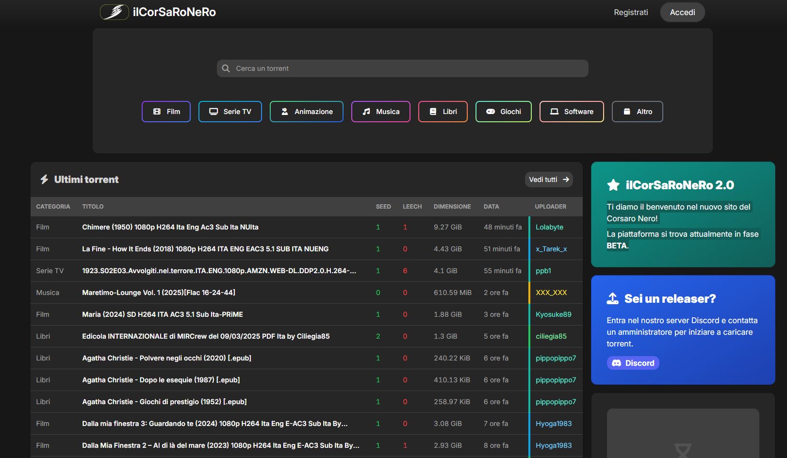 Sito dove trovare torrent molto interessanti (occorre registrarsi).