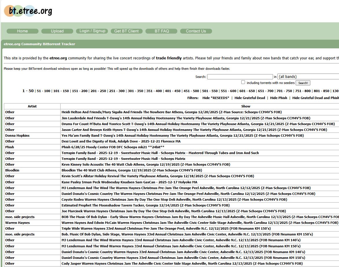 Una piattaforma gratuita per registrazioni di concerti dal vivo e torrent audio.